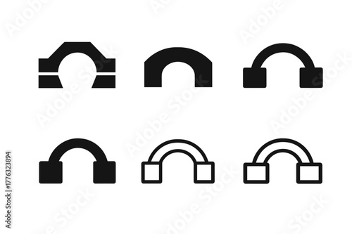 Nafukovací oblouk, vstupní brány heliové trubice, balónový oblouk různého tvaru prázdné prázdné makety 3D vektorové ilustrace. Geometrické rámování pódií pro výstavní nebo sportovní soutěže
