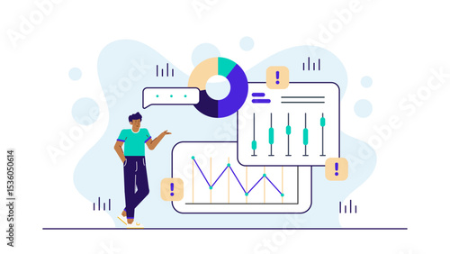 Muž s nákupním košíkem zažívá rostoucí ceny potravin v průběhu času stojící poblíž kalendáře a rostoucí šipkový graf, ploché vektorové ilustrace. Ekonomická inflace, ztráta kupní síly.