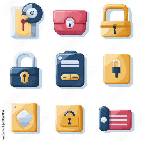 Pojištění ikona vektorové sady. Auto, peníze, majetek a bezpečnost zdraví izolované 3D ikona na bílém pozadí. profesionální péče o život, dům, vozidlo, podnikání a finance ilustrace