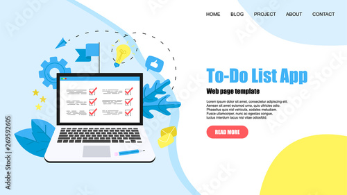 Šablona webových stránek vstupní stránky interiérového designu. Vektorový izometrický stolní počítač s 3D modely nábytku do obývacího pokoje, před ním plán domu. Online koncept plánování interiéru.