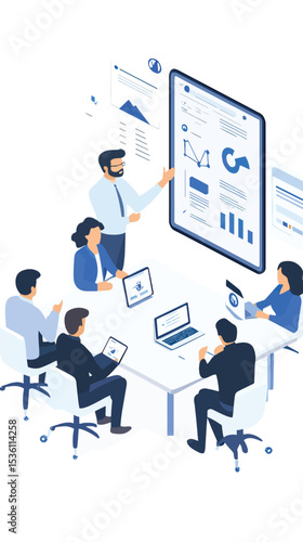 Mezinárodní setkání s arabskými podnikateli, investory v zasedací místnosti, ploché vektorové izometrické ilustrace. Koncept Arabských investic.