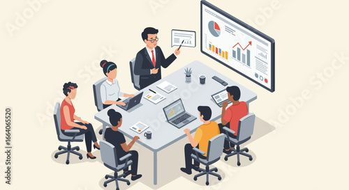 Mezinárodní setkání s arabskými podnikateli, investory v zasedací místnosti, ploché vektorové izometrické ilustrace. Koncept Arabských investic.