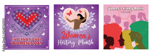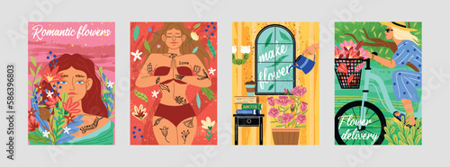 Mezinárodní den žen plakáty a karty, vektorová ilustrační sada. Muž dává květiny kytici ženě. 8 March holiday banner s tulipánem květinovým vzorem pozadí. Happy women day design.