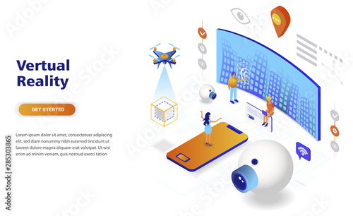 Šablona webových stránek vstupní stránky internetu věcí. Vektorové izometrické inteligentní domácí spotřebiče a další zařízení ovládaná smartphonem. Inteligentní domácí bezdrátová technologie, domácí automatizace nebo koncept Iot