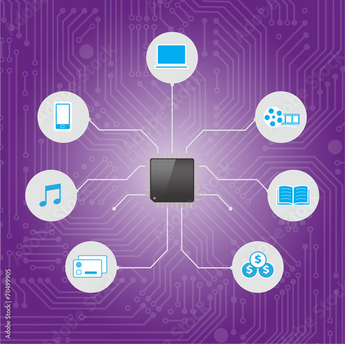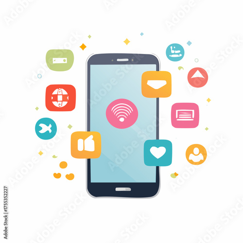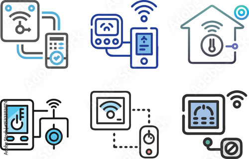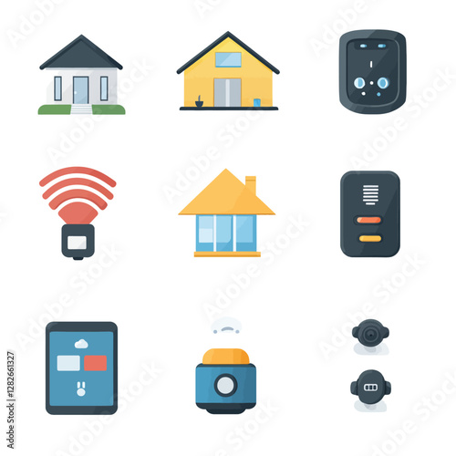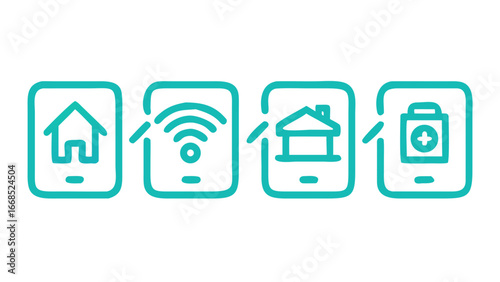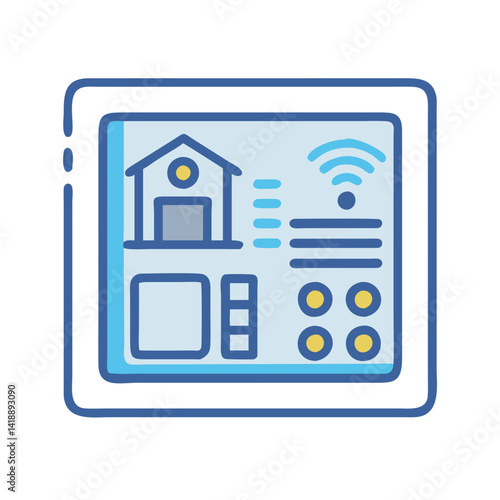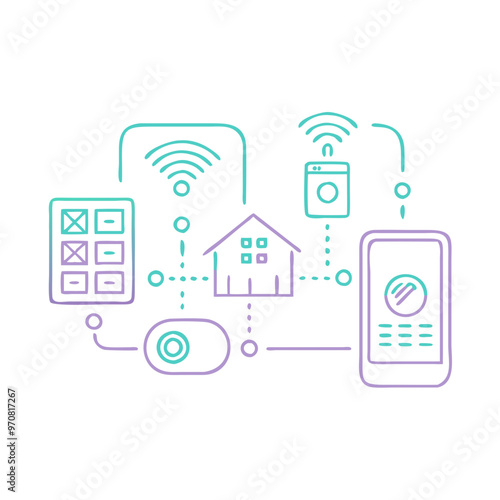 Ilustrace vektorového konceptu internetu věcí. Smartphone s nápisem IoT na obrazovce. Domácí spotřebiče, ikony spotřební elektroniky v šestiúhelníku. Home automation concept design element plochý styl