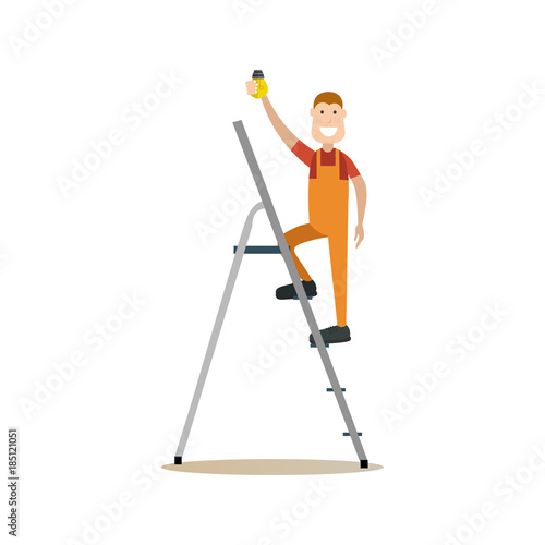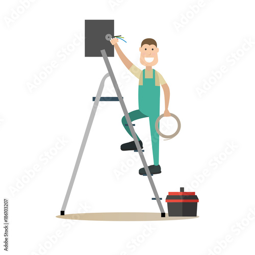 Vektorové ilustrace pracovníka male instalace sítě. Koncept připojení k internetu. Internet lidé plochý styl designový prvek, ikona izolované na bílém pozadí.