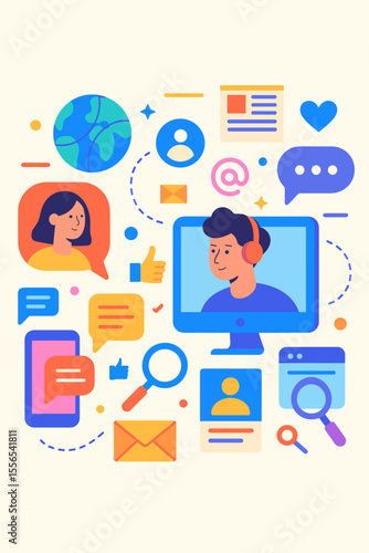 Internet trolling vektorové ilustrace set izolovaných na bílém pozadí. Šikana na sociálních médiích, kyberšikana, koncept digitálního obtěžování pro webový banner, webová stránka atd.