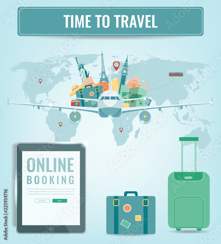 Investice do real estate concept vector flat ilustrace. Smlouva, městské budovy, trezor, váhy, mapa světa s umístěním pin. Investice do nemovitostí, finanční růst a úspory peněz plakát banner.
