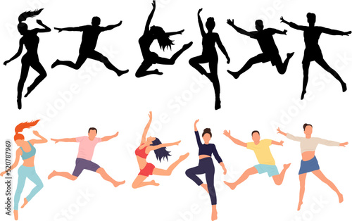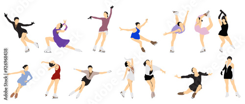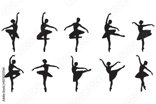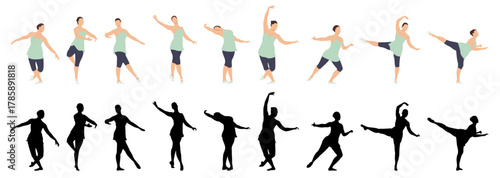 Izolovaná sada mužských a ženských baletních tanečníků, kteří nosí špičaté boty a cvičí klasický taneční pohyb. Muž A Žena cvičení samostatně nebo v páru vektorové ilustrace