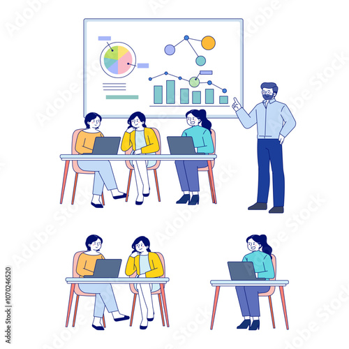 Izolovaná sada postav pacienta a zubaře. Muž drží zub rentgen, malý chlapec na vyšetření, ortodontista s zubními nástroji a výsledky vyšetření vektorové ilustrace