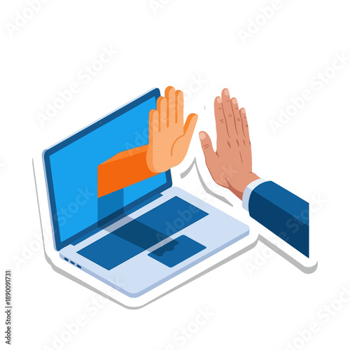 Izometrická 3D tiskárna stavební kostka na obrazovce mobilního telefonu, objednávka lidské ruky online, vektorové ilustrace. Služba 3D tisku pro aditivní výrobu na vyžádání.