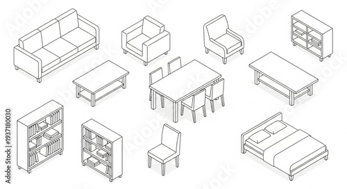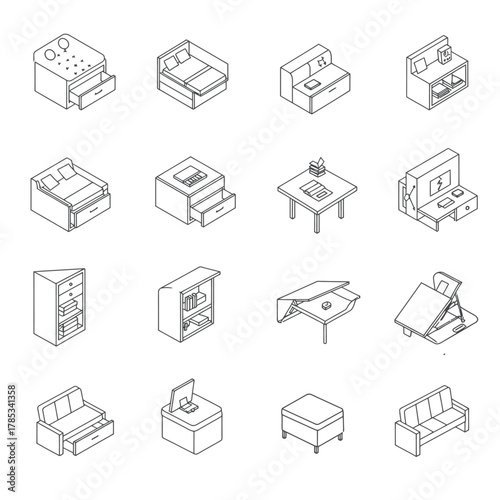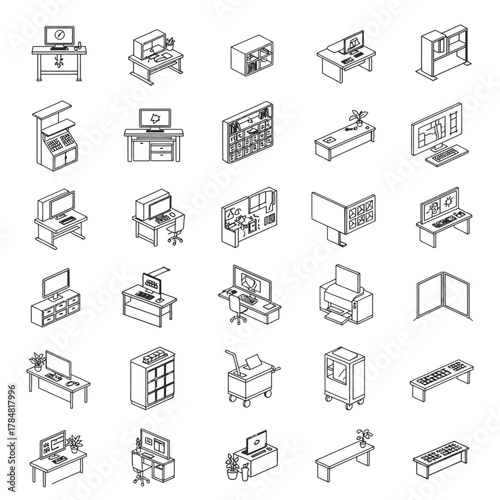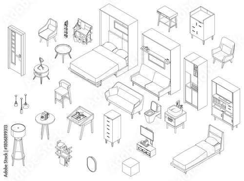 Izometrický návrhář interiéru koupelny. Vektorová sada izometrických nábytkových prvků domácího interiéru izolovaných na bílém pozadí. Plochá 3D šablona návrhu.