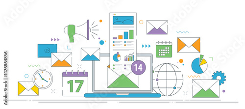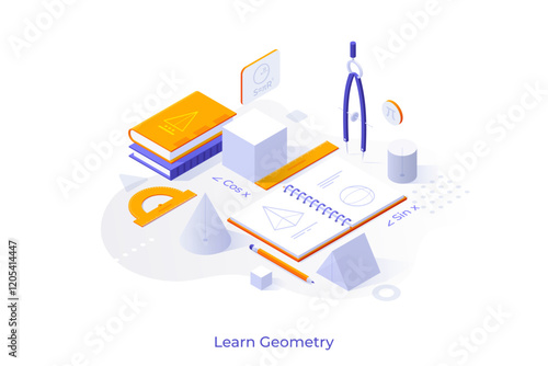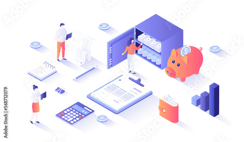 Izometrický Business icon set, plochý vektor izolované ilustrace. Proces instalace softwaru, koncept připomenutí přerušení.