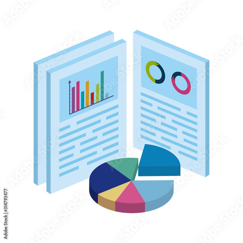 Graf izometrických dat a ikona vektoru grafu. SEO technologie pro statistickou analýzu informací