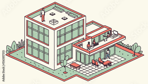 Izometrický hokejový stadion, hráči a fanoušci, ploché vektorové ilustrace. Hokejová aréna, kluziště, sportovní hřiště s tribunou, výsledková tabule.