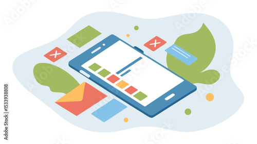 Izometrický smartphone s bowlingovou koulí a kuželky, dáma, hrací karty, domino, čipy, kostky, kulečníkový stůl na obrazovce, ploché vektorové ilustrace. Mobilní hry. Kasinové hry. Mobilní, pohybliví karban.