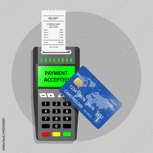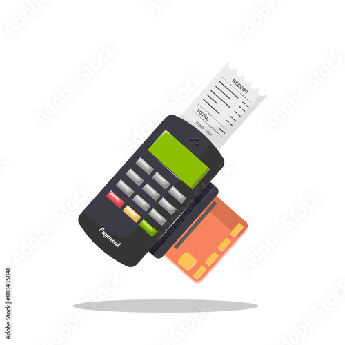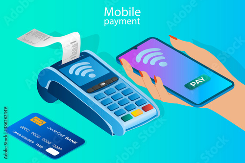 Izometrický terminál pos stroj pro platbu prostřednictvím vektoru bankovní karty. Bezhotovostní nákup peněz transakce 3D ikona izolovaných na bílém pozadí