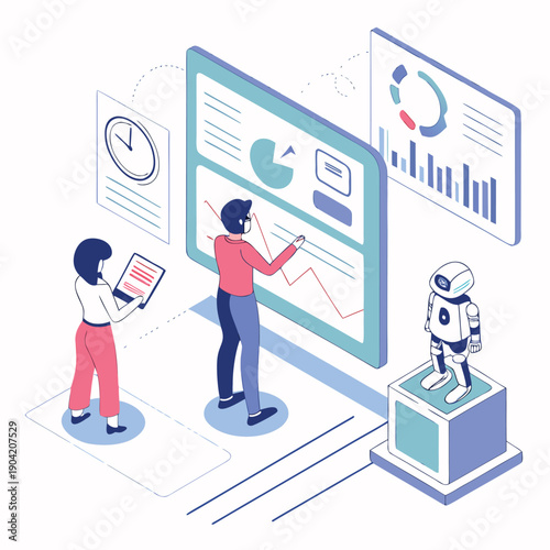 Izometrické ženské postavy, tři nejlepší závodnice sportovní akce s použitím bionických končetin, protézy nohou stojící na stupních vítězů, ploché vektorové ilustrace. Bionické technologie.