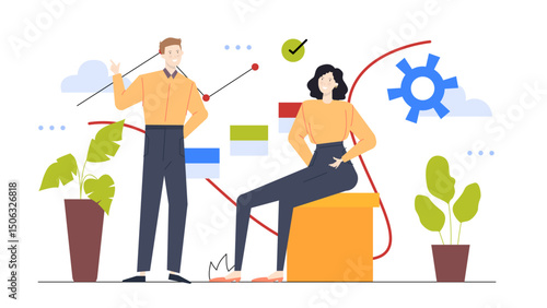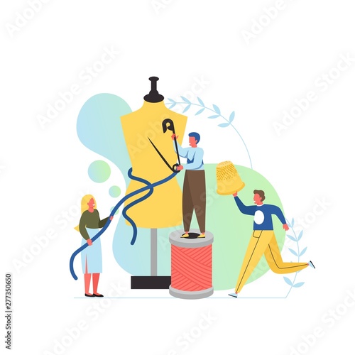 Japonské jídlo vektorové ilustrace. Drobné postavy tlačí obrovský Maki sushi roll, drží hůlky, misku wasabi pasty, zatímco sedí na sójové omáčce. Tradiční asijská kuchyně, sushi bar, Restaurace.