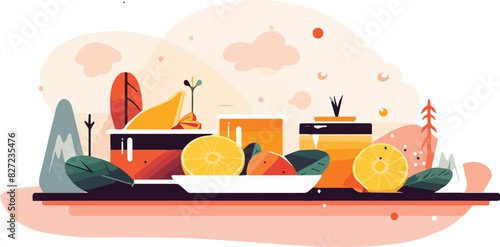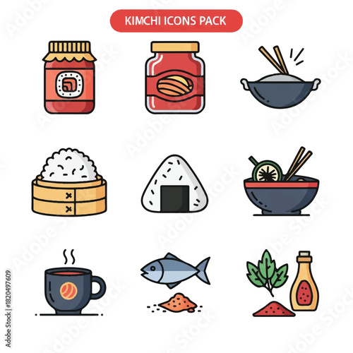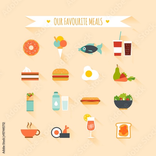 Japonské jídlo vektor plochý styl designu ilustrace. Nudle nebo těstoviny v misce, maki sushi rolky, sójová omáčka atd. Tradiční japonská kuchyně plakát banner.
