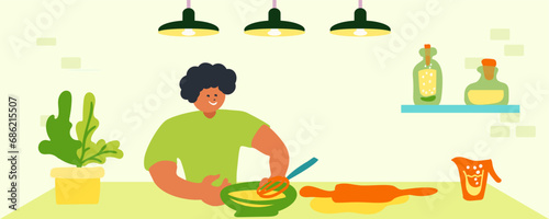 Japonské jídlo vektorové ploché ilustrace. Japonské sushi rolky, sójová omáčka, ruční hůlky s nigiri sushi. Plakát asijské kuchyně, banner.