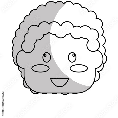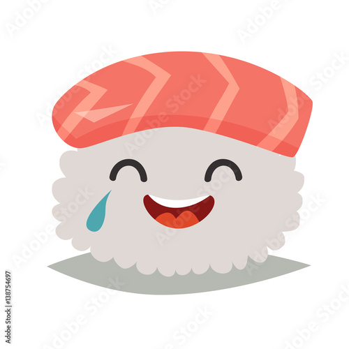 Japonský nigiri sushi vektorový znak s ikonou ryby. Roztomilý Asijské fast food kreslený obličej izolovaných na bílém pozadí. Kawaii orientální snack emotikon