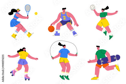 Jazz band kreslené postavičky. Vektorové ilustrace izolovaných na bílém pozadí. Hudebníci hrající na kytaru, bicí, pozoun, trubka, saxofon, housle, kontrabas. Zpěvák zpívá s mikrofonem.