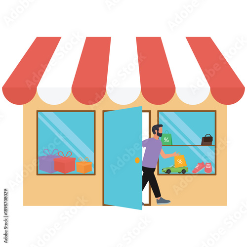 Vektorové ilustrace mladého muže při pohledu na vitrínu Klenotnictví. Klenotnictví koncept plochý styl designový prvek