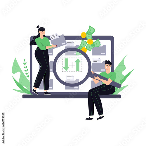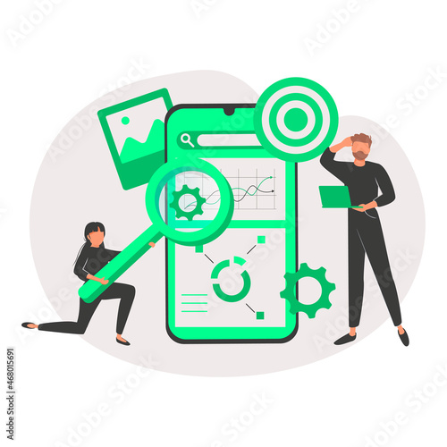 Koncept práce vektorový plochý design ilustrace. Personální agentury manažeři kreslené postavičky výběru nejlepšího kandidáta na práci. Nábor, najímání, pracovní proces. Koncept řízení lidských zdrojů.