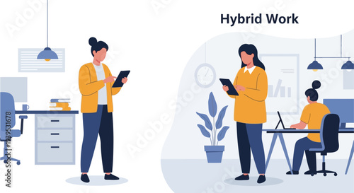 Hledání práce vektorový koncept plochý styl design ilustrace. Drobné postavy hledající volné místo pomocí novin, notebooku, tabletu a mobilního telefonu. Lidské zdroje, zaměstnanost,nábor.