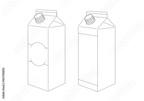 Džus a balení mléčných výrobků mock up set, vektorové izolované ilustrace. Realistické bílé prázdné plastové láhve a kartonové balení pro mléko, jogurt, ovocné a zeleninové šťávy atd.