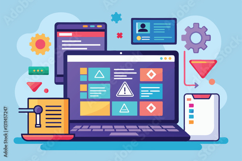 Kanban vektorové ploché ilustrace. Kanban karty na tabuli, raketa, schránky s kontrolním seznamem. Agilní metodika pro startup business, vizuální koncepty řízení procesů pro webový banner, webové stránky.
