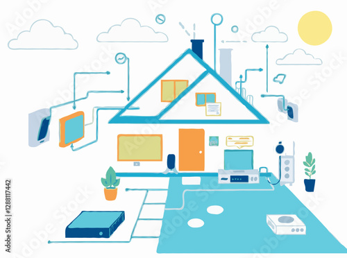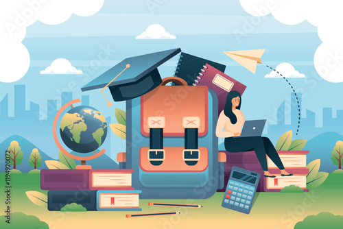 Kanban concept vector flat ilustrace. Notebook s kartami na virtuální pracovní desce na obrazovce, handshake, Aktovka, lampa, pravítko. Online Kanban technologie složení pro web banner, webové stránky atd.
