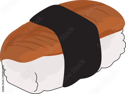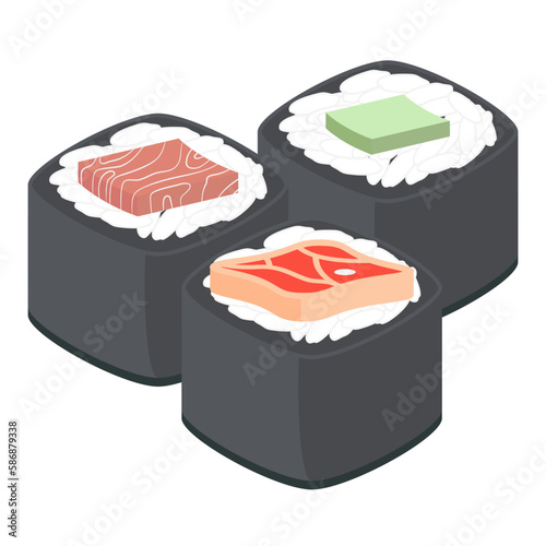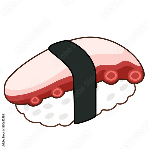 Kawaii sushi s chobotnice chapadlo vektor. Legrační japonské jídlo Roztomilý kreslený ikona. Šťastný nigiri orientální mořské plody tvář izolovaných na bílém pozadí