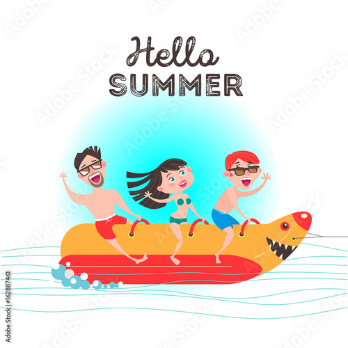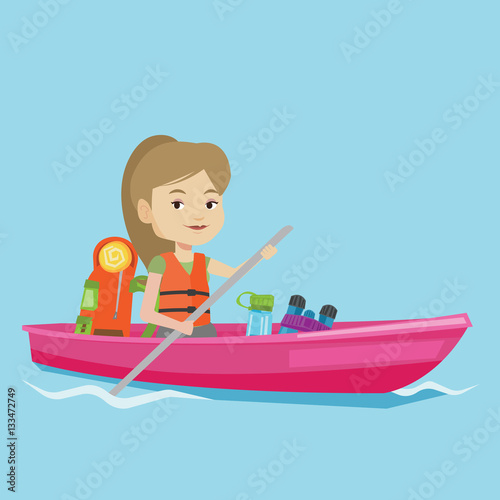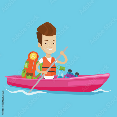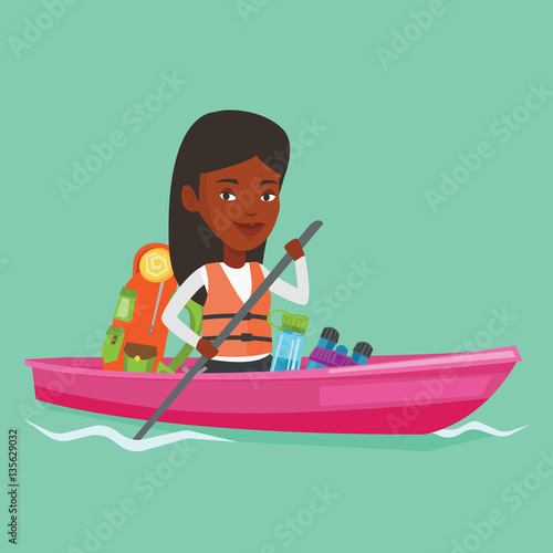 Vektorová ilustrace konceptu kajaku. Kajak, pár pádlování. Extrémní vodní sporty, plochý designový prvek.