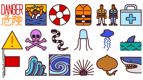 Sada ikon na kajaku. Vektorové ilustrace vodní sportovní vybavení, ochranné pomůcky a kempování předměty izolovaných na bílém pozadí.
