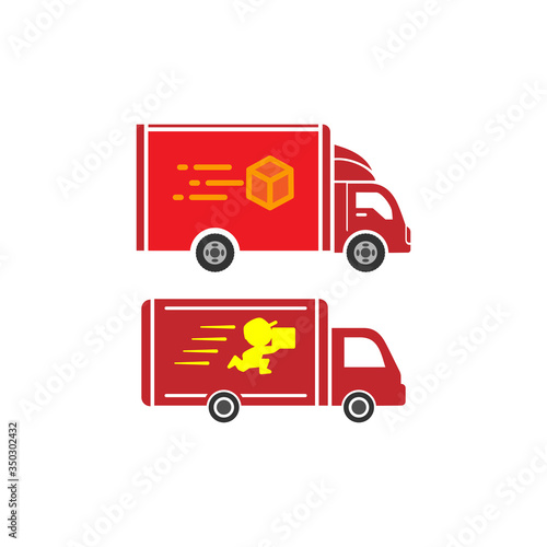 Kečup doprava dodávkou truck vektorové ikony izolovaných na bílém pozadí