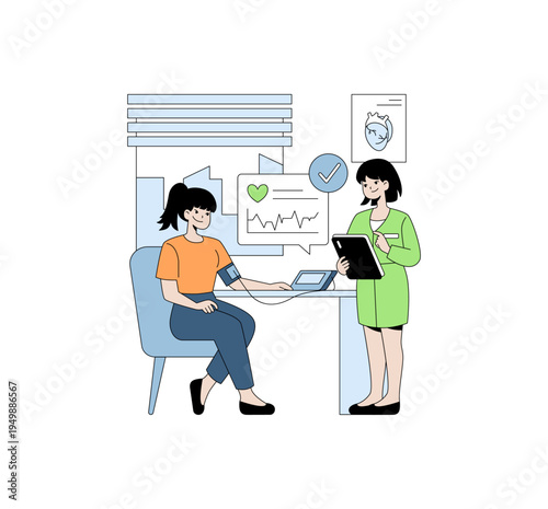 Dětská prohlídka. Lékař pediatr zkoumá dítě sedí na mámě kolena, ploché vektorové ilustrace. Dětská medicína. Pediatrie.