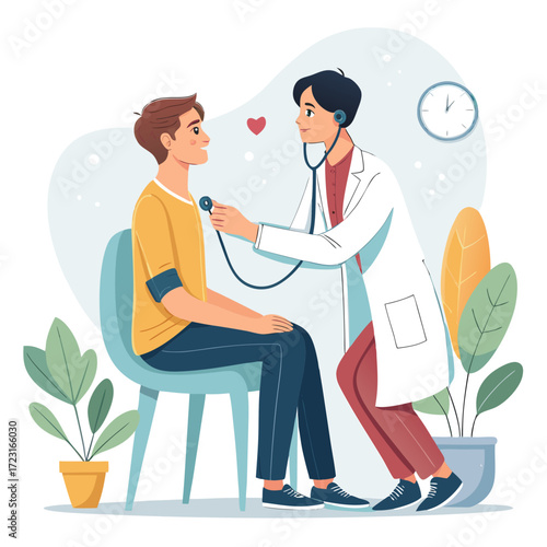 Dětská prohlídka. Lékař pediatr zkoumá dítě sedí na mámě kolena, ploché vektorové ilustrace. Dětská medicína. Pediatrie.