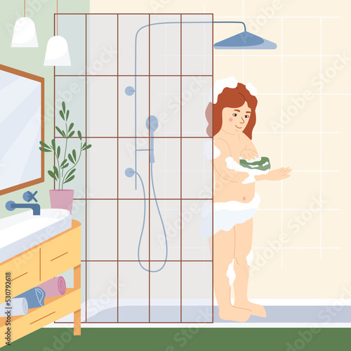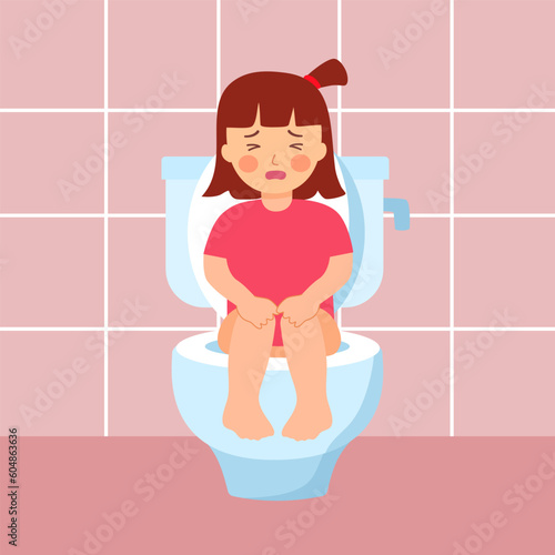 Dítě dívka sedí na záchodové míse, ploché vektorové ilustrace. Toaletní rutina.