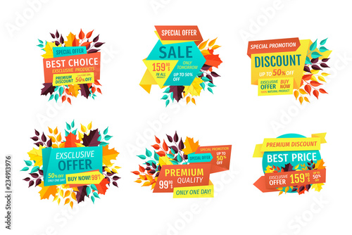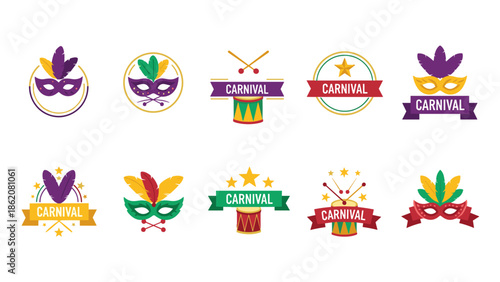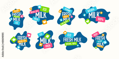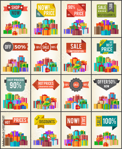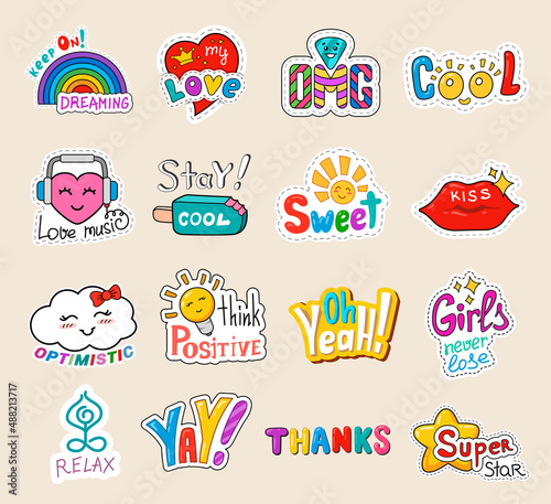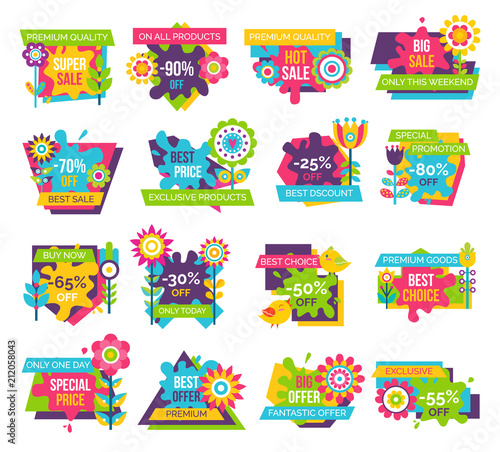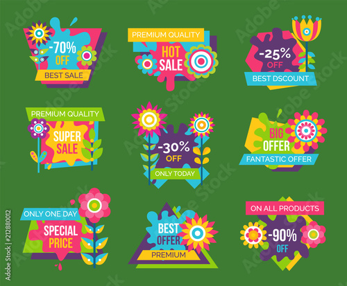 Dětské party znak, logo, banner set, ploché vektorové ilustrace izolovaných na bílém pozadí. Dětské hřiště, herna, herna štítky. Dětský klub, dekorace herní zóny.