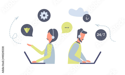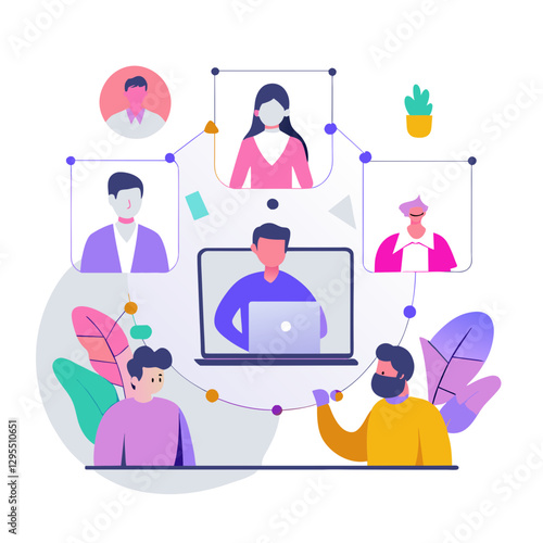 Děti studující jazyky s online učitelem, ploché vektorové ilustrace. Třída anglického jazyka, kurz. Online vzdělávání, doučování, domácí vzdělávání, distanční vzdělávání.