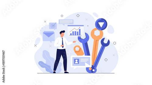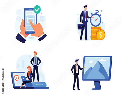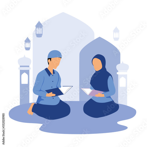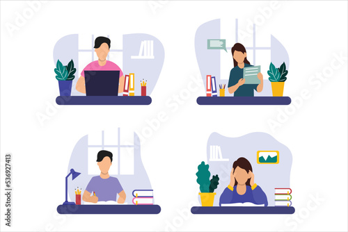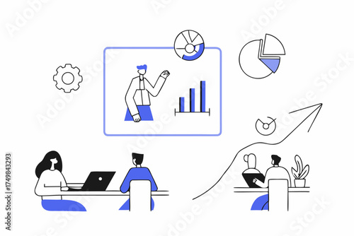 Děti studující jazyky s online učitelem, ploché vektorové ilustrace. Třída anglického jazyka, kurz. Online vzdělávání, doučování, domácí vzdělávání, distanční vzdělávání.