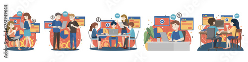 Děti týden planner landing Page design, webové stránky banner šablona set, plochý vektor ilustrace. První školní den, den s mámou. Denní rozvrh, rozvrh.