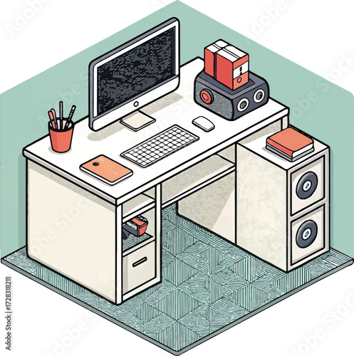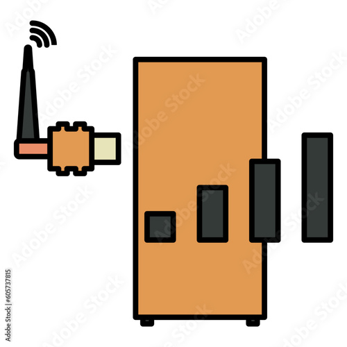 Kuchyně elektrický domácí spotřebič vektor. Ilustrace vybavení domácnosti. 3D lednice, mikrovlnná trouba a sporák s digestoří. Domácí potřeby pro skladování a vaření potravin