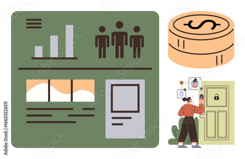 Vektorová ilustrace ženy stojící před otevřenou ledničkou s jídlem. Kuchyně v domě plochý styl designový prvek.