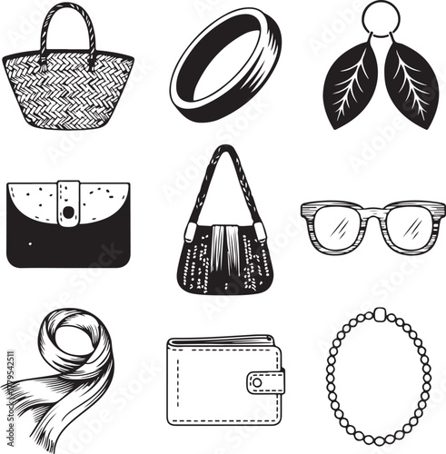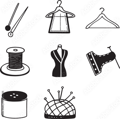 Pletení a háčkování set, vektorové inkoust ručně kreslené ilustrace izolovaných na bílém pozadí.