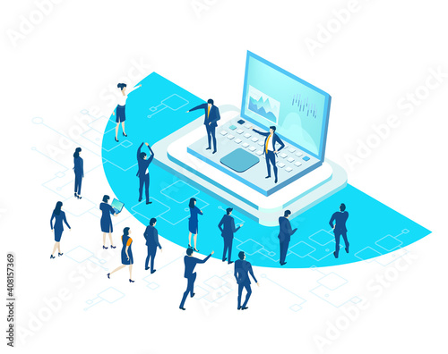 KYC. Poznejte svého klienta 3D vektorový plakát. Drobní podnikatelé, kteří se učí informace o profilu zákazníka. Obchodní ověření identity klientů a posouzení vhodnosti pro partnerství