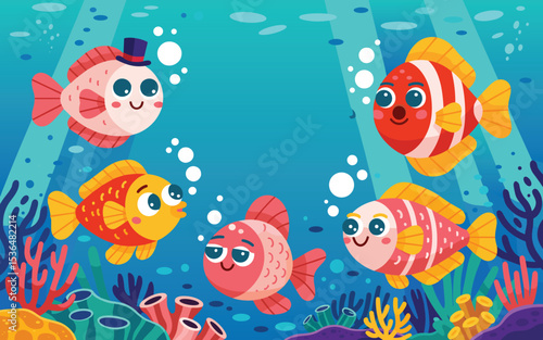 Jezero Pohled shora pozadí s plavání koi ryby. Modrá voda libra s lilie Lotosový květ vektorové ilustrace v kresleném stylu