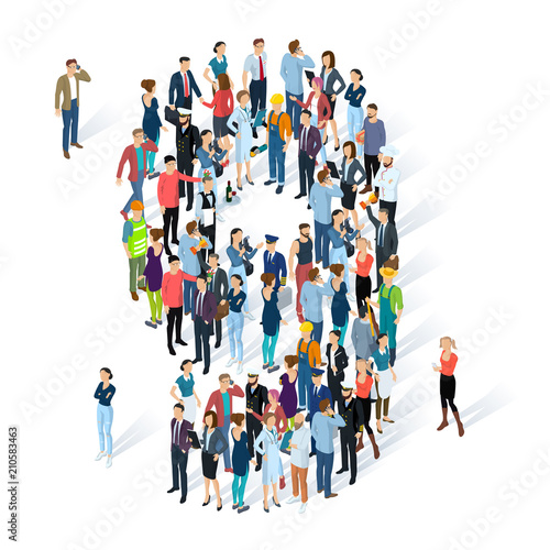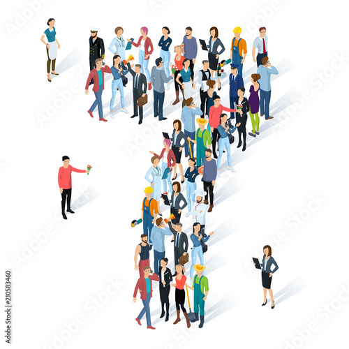 Velká skupina lidí stojící v dlouhé řadě, ploché vektorové ilustrace. Lidé se shromažďují.
